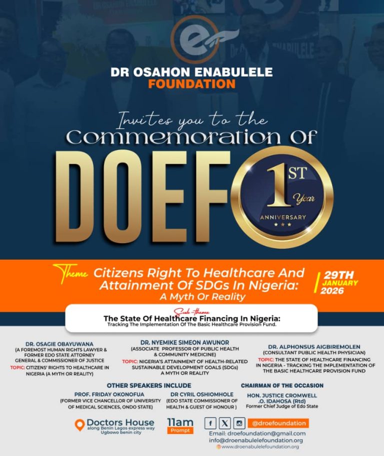 The Dr. Osahon Enabulele Foundation is a charitable foundation borne out of the critical need to advance progressive social change and societal development, through innovative health and education initiatives, societal empowerment, good governance and leadership excellence.
